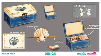 What follows are a few examples of the prop design sheets I provided, based on the storyboards I was given. All belong to Caribara Studio